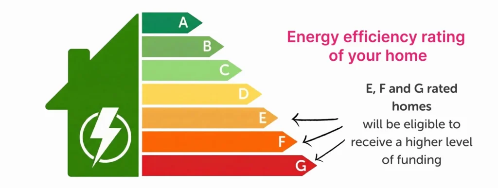- To be eligible, you should either own your home or rent it from a private landlord with their consent, live in England, Scotland, or Wales, and have an EPC rating of E, F, or G, or no central heating.